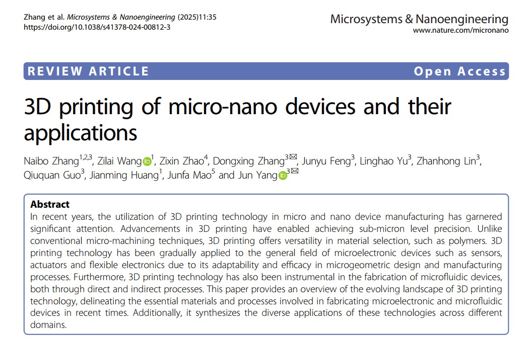 2025年5月24日,北京邮电大学、中国电子科技集团公司第54研究所(CETC 54 )、中山大学、深圳大学和电子科技大学的研究人员近期共同撰写了一篇新综述,探讨了3D打印在微电子和微流体应用方面的最新进展。
