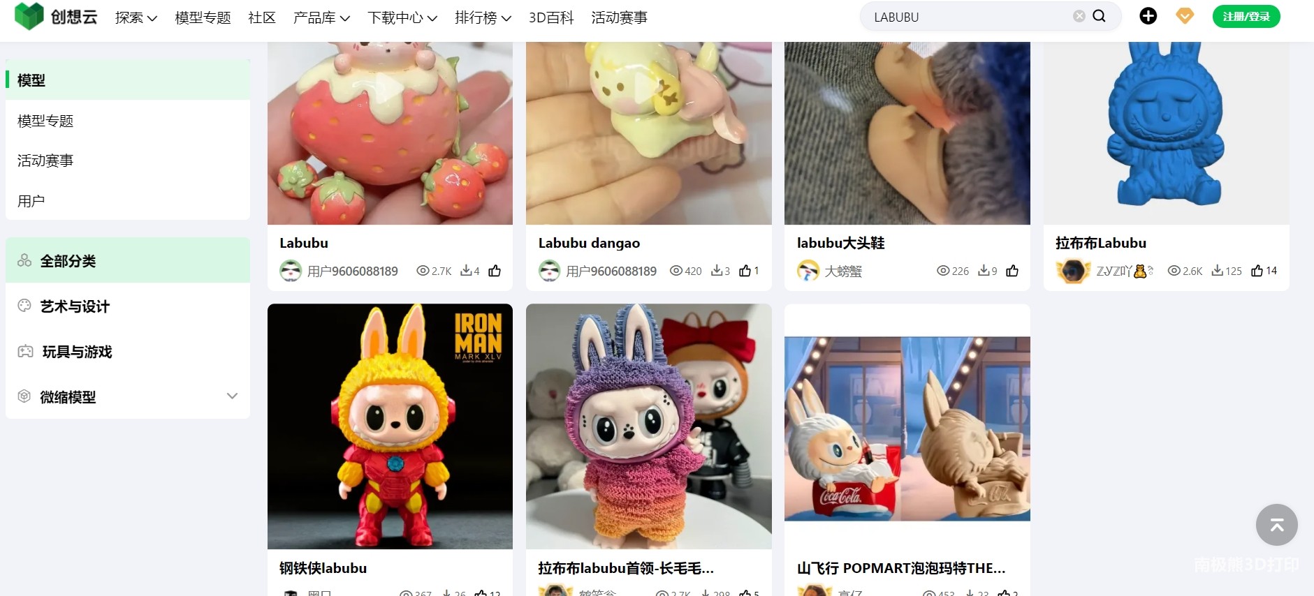 在MakerWorld、Cults3D、创想云等平台,LABUBU模型下载量飙升。