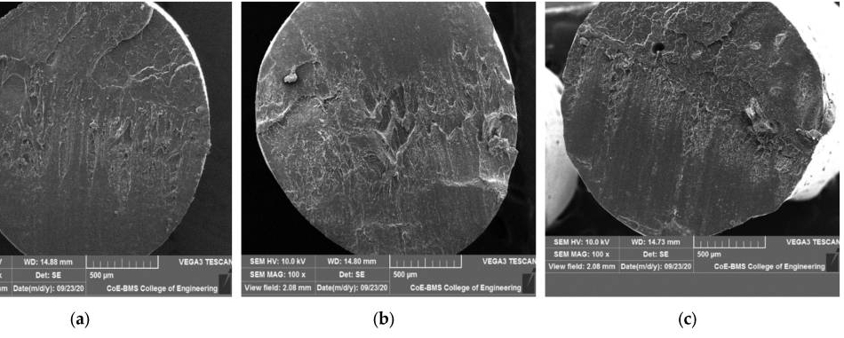 △通过FDM制造的样品的SEM图像:(a)PLA;(b)PLA + 5 wt% BN;(c)PLA + 10 wt% BN