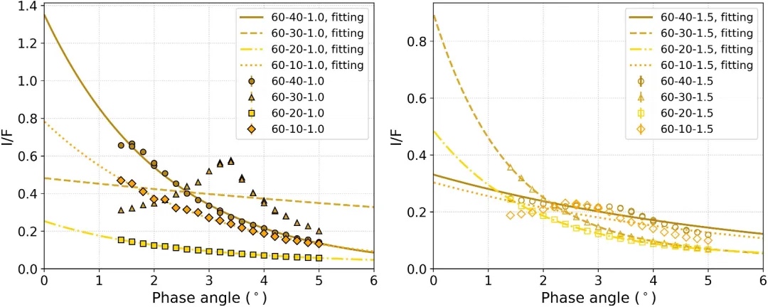 △图6. 高孔隙样品(n=60)在小相位角下的反射率相位曲线。
