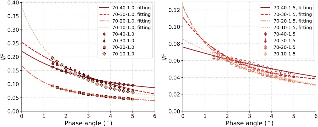 △图5. 中等孔隙度样品(n=70)在小相位角下的反射率相位曲线。