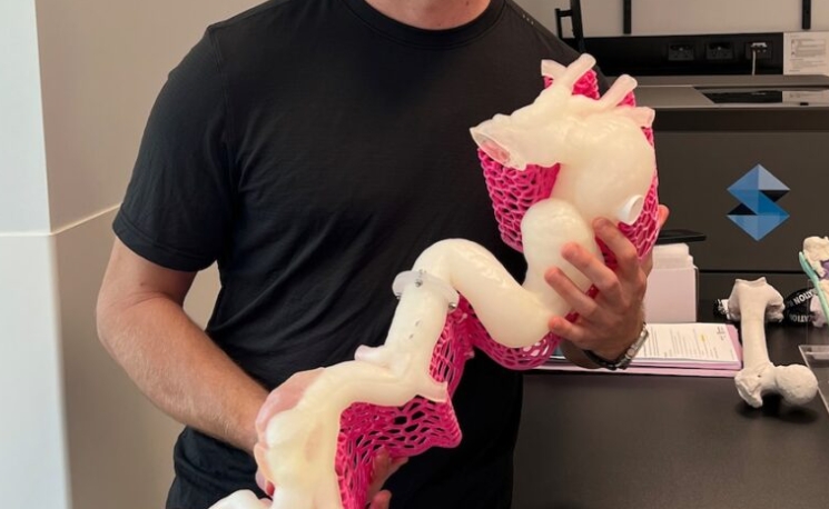 医护人员形容,患者主动脉膨胀至正常尺寸的四倍,犹如胸部内的一颗“定时炸弹”。澳大利亚和新西兰共有39个医院能够实施成人心脏手术,但其中只有少数能够执行高度复杂的手术,例如全主动脉弓置换术,尤其是使用3D打印规划模型。手术团队在准备过程中,借助赫斯顿生物制造研究所工程师设计并制造的3D打印模型,对患者主动脉的形状和柔韧性进行了精准还原。该模型由Stratasys J750数字解剖打印机打印,结合多种硬质与软质材料,能够真实模拟血管的不同组织特性,为外科医生提供了直观的术前手感体验。