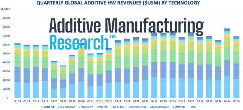 AM Research发布的2025年第一季度3DP/AM市场数据和预测报告,及其市场洞察报告,详尽分析了金属和聚合物增材制造(AM)的硬件、材料以及服务等主要趋势。数据涵盖公司、地区和行业的信息,为我们提供了增材制造当前状态的深入视角。