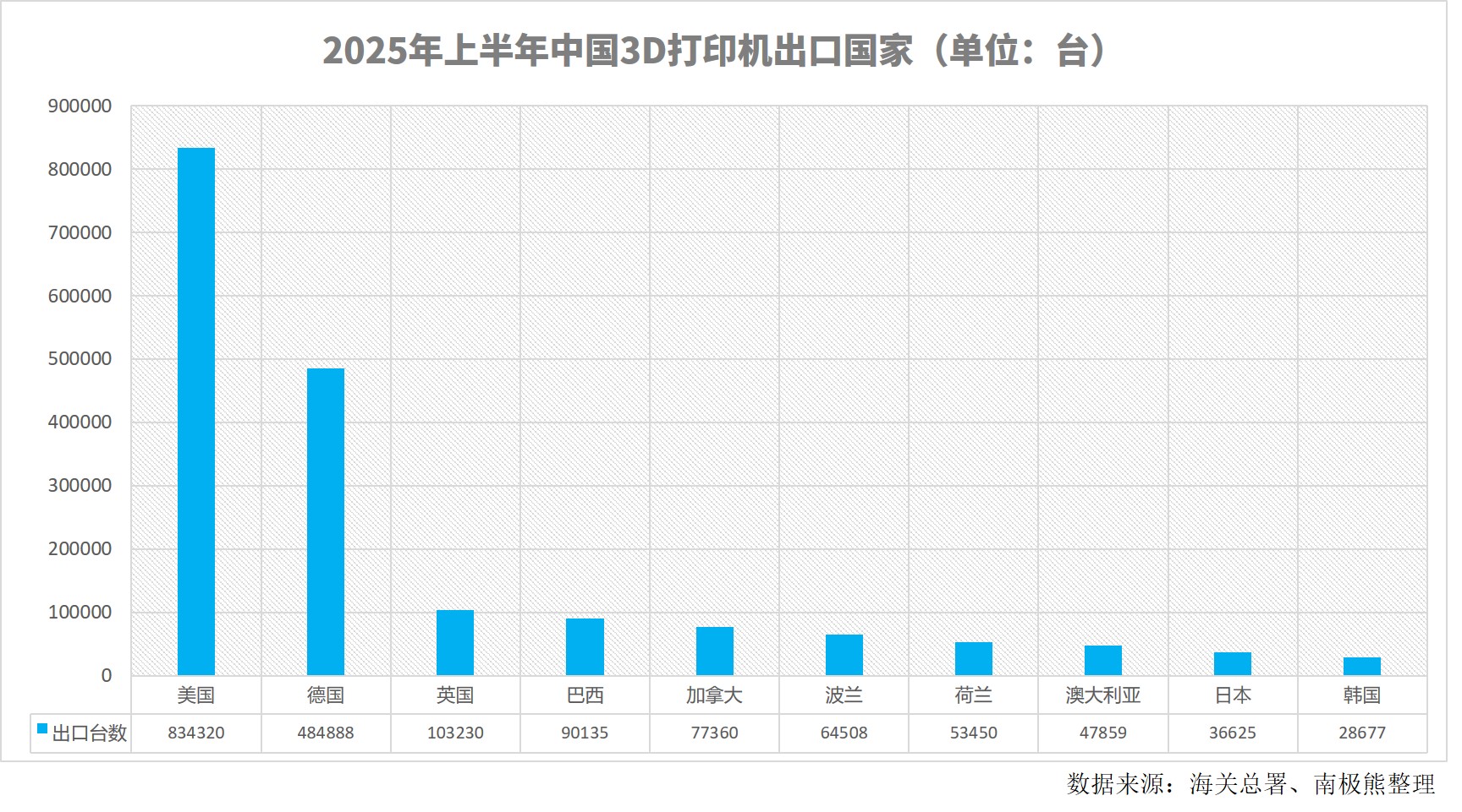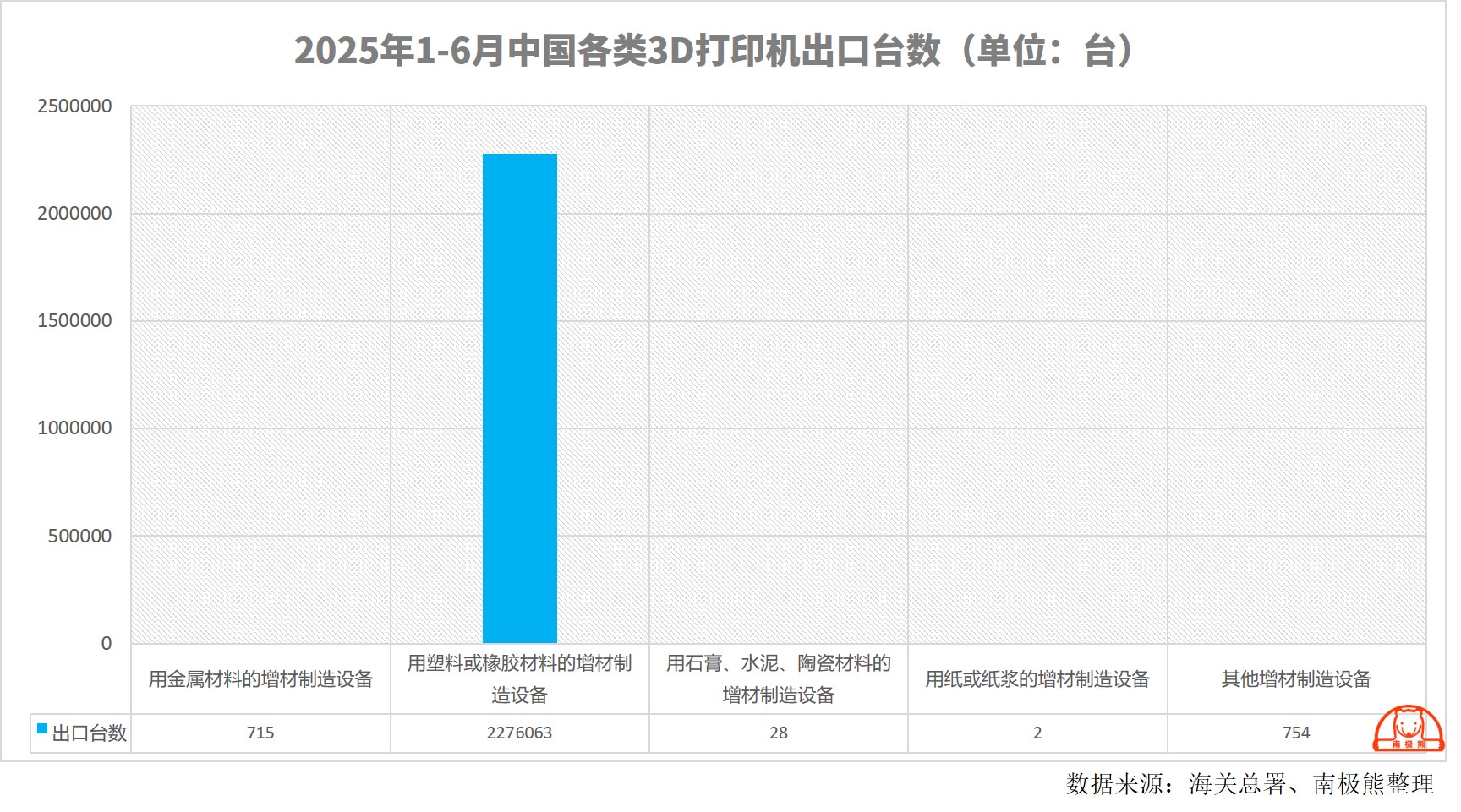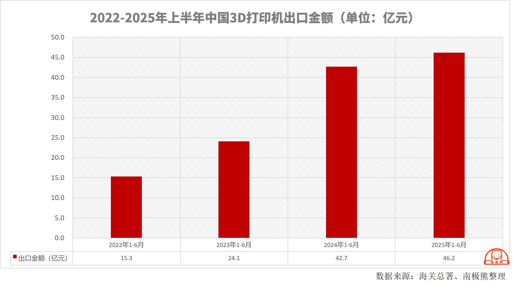 3D打印机出口227.8万台,出口金额超46亿元,2025年上半年再创新高