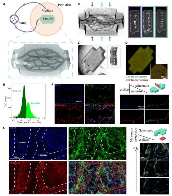 图4 3D打印血管化可灌注厚组织