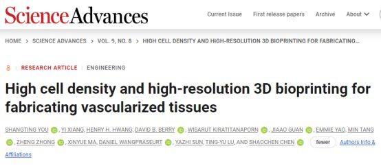 生物打印里程碑!上亿细胞密度下突破50um分辨率!