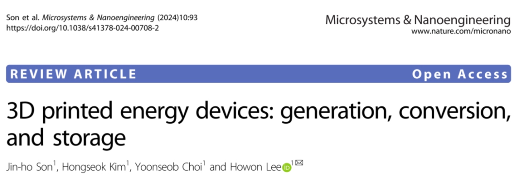 《Microsyst. Nanoeng.》综述:3D打印能源设备