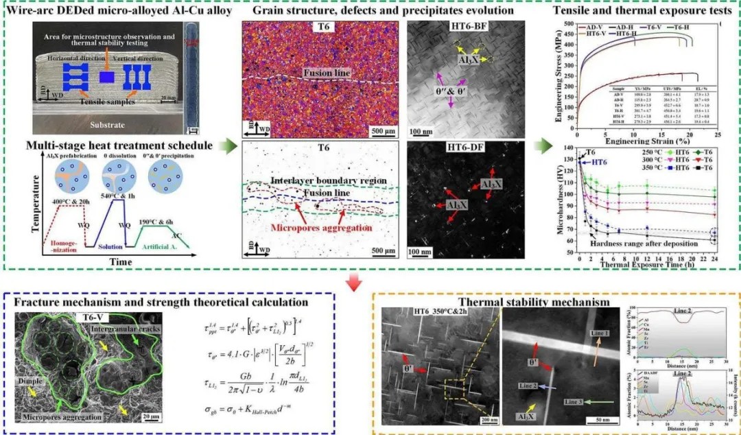标题:Tailoring the mechanical properties and thermal stability of additive manufactured micro-alloyed Al-Cu alloy via multi-stage heat treatment