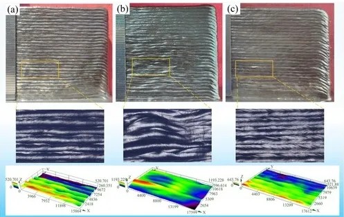 图 16. 不同热输入下薄壁样品的表面形态