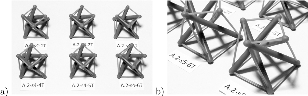 图 2. 3D 打印张拉整体模块照片:(a)标本 A.2-s4;(b)标本 A.2-s5。