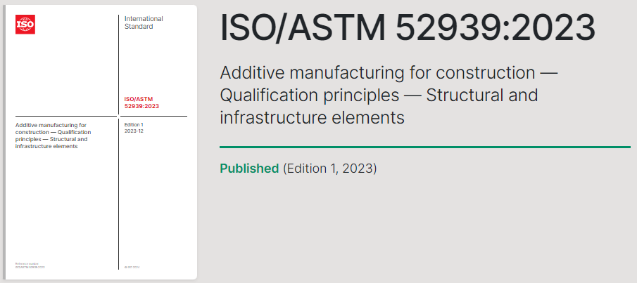 除了航空航天、航天、国防和航空之外,许多新的增材制造标准已经为一系列应用和垂直领域制定。去年,国际标准化组织(ISO) 发布了建筑 3D 打印的新标准。新标准名为ISO/ASTM 52939:2023,旨在确保 3D 打印在建筑应用中的安全性。它由 ISO