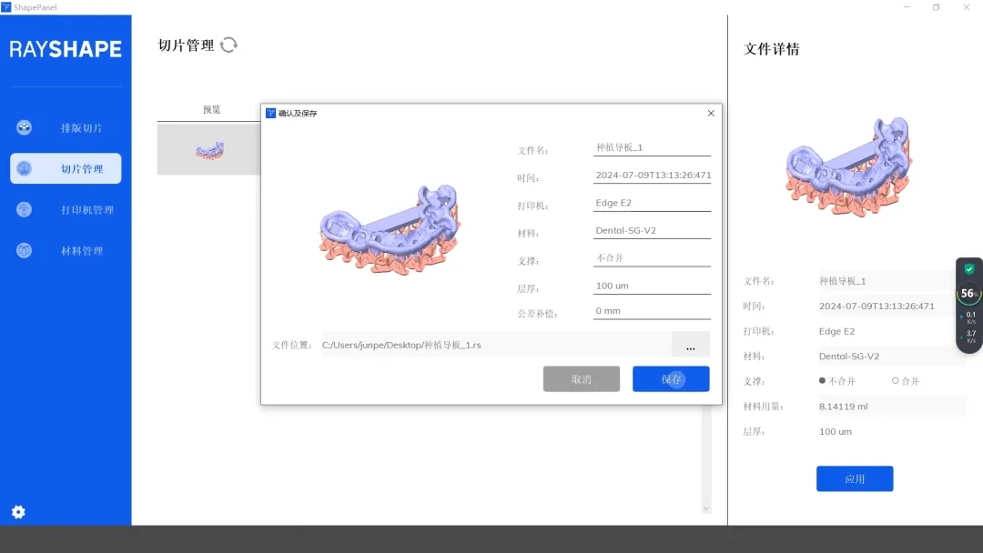 RAYSHAPE自主研发的数据前处理软件ShapePanel,与Edge E2齿科专业级3D打印机协同工作,展现了杰出的高效打印能力。借助这一流程,能够为患者量身定做与口腔结构高度契合的数字化种植导板,整个3D打印工序在只需30分钟便能顺利完成。