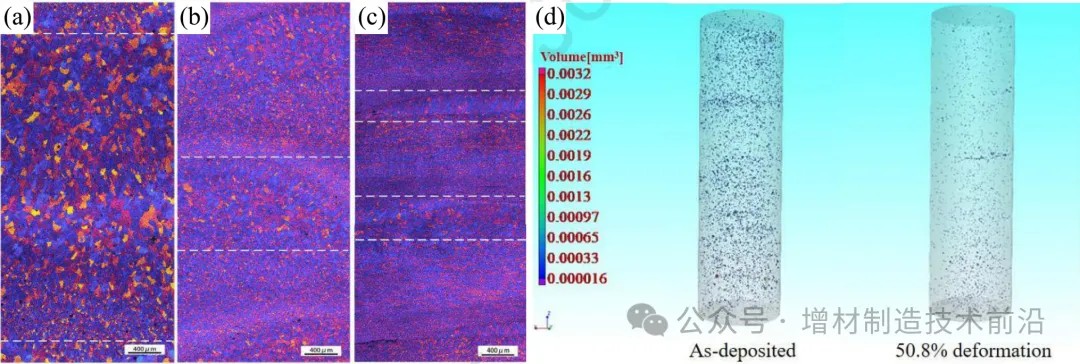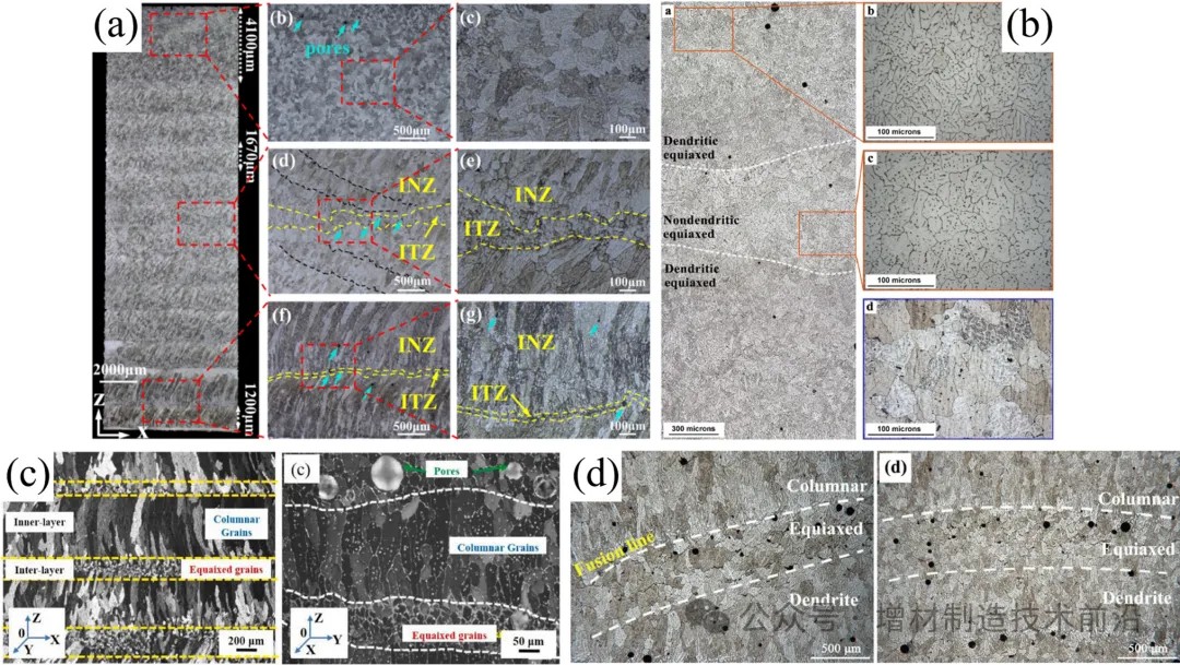 主要与不均匀的热循环有关,非均匀性的程度则取决于热循环的性质。虽然这种不均匀的微观组织似乎不可避免,但是它可以被有效地改善通过优化增材工艺参数,或引入后加工工艺如层间轧制和T6热处理等方法。