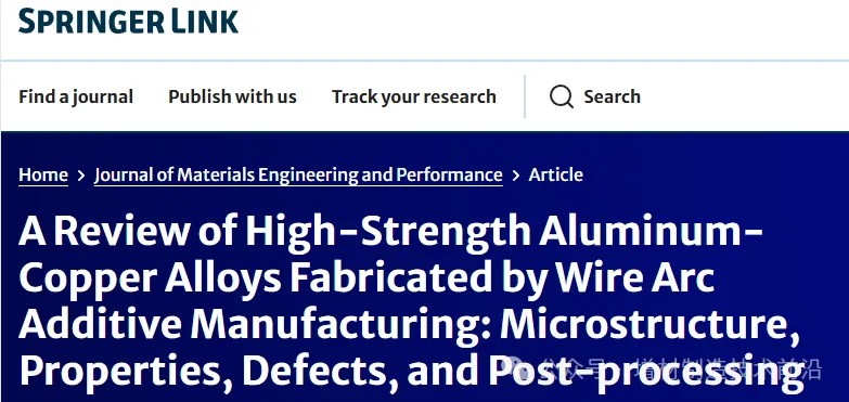 昆明理工:电弧增材制造高强度Al-Cu合金的组织、性能、缺陷和后加工工艺综述