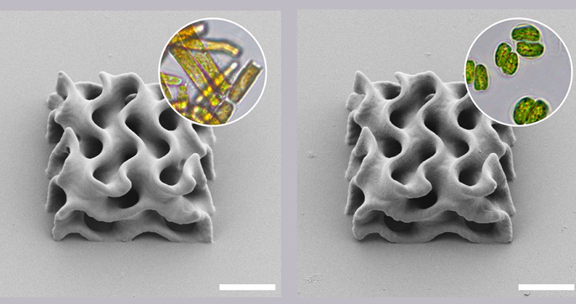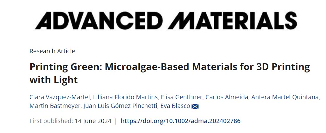 2024年8月,来自海德堡大学的,由Eva Blasco教授领导的研究团队揭示了微藻在3D打印中的潜在价值。他们发现,金鳞小藻(O. aurita)和条纹四爿藻(T. striata)可以转化为高分辨率3D打印所需的墨水,他们的研究已经发表在Advanced Materials上,题目为Printing Green: Microalgae-Based Materials for 3D Printing with Light。研究表明微藻提取物在双光子3D激光打印技术展现出惊人的可打印性,为环保材料的开发开辟了新路径。