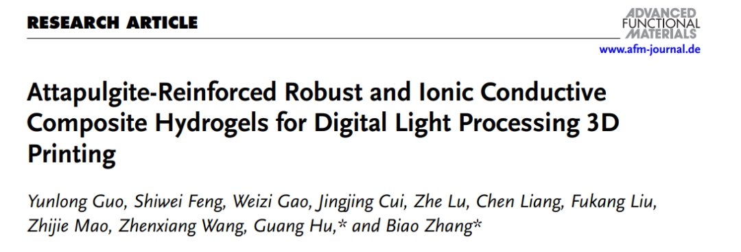 鉴于此,西北工业大学张彪团队联合淮阴工学院胡光团队开发了一种新型的3D打印离子导电复合水凝胶,这种水凝胶通过加入经过修饰的膨润土(Attapulgite,简称ATP)和聚乙烯醇(Polyvinyl Alcohol,简称PVA)的双重网络增强,具备了优异的机械性能和离子导电性。