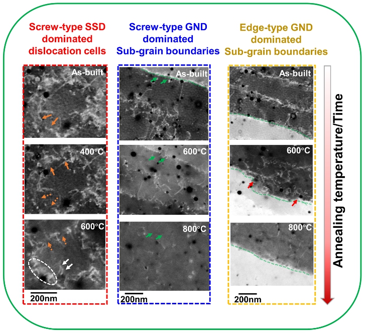 图2 位错类型对亚晶界/位错胞热稳定性影响