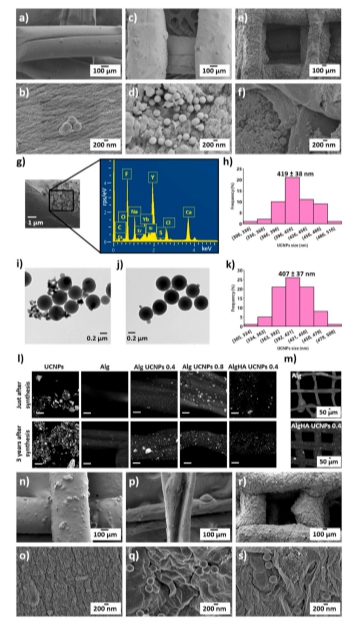 在本研究中,圣地亚哥德孔波斯特拉大学Carlos A. García-González团队研究一种3D打印的UCNPs标记的海藻酸盐气凝胶是一种有前景的诊疗植入物,能够用于组织工程和生物成像。