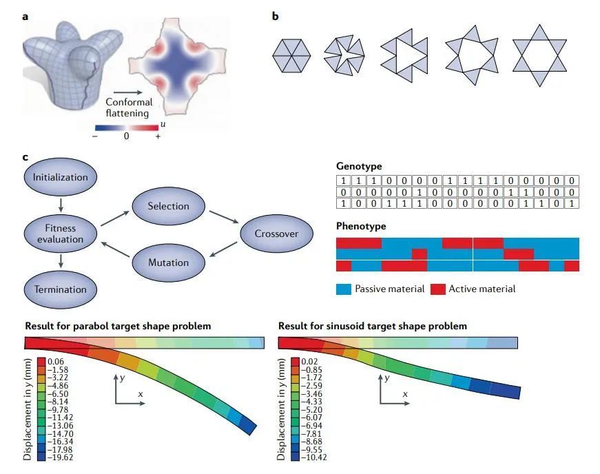 通过运用形状编程可使具有特殊功能的材料在特定刺激下(温度、离子浓度、机械负载)实现规定的形状变化。基于目标几何结构的形状编程常用于可穿戴医疗植入物的制造,其可以直接3D打印在人体上,以进行临床诊断或进行伤口修复。