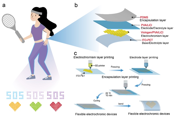 3D打印水凝胶基柔性可穿戴电致变色显示器