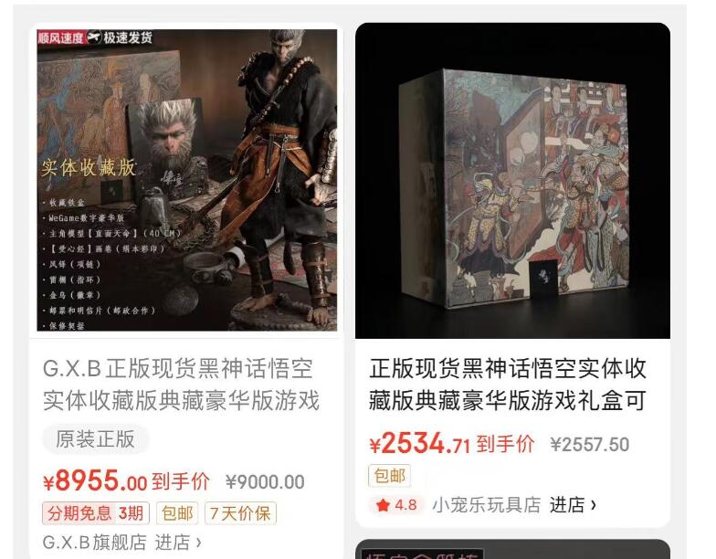 南极熊注意到,游戏科学官方自己出的限量版悟空手办质量太高了。2000块的实体收藏版,现在炒到近9000元了。