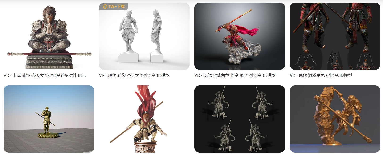 无论什么IP火了之后,3D打印圈的反应绝对是快的。在各大3D模型平台,黑神话悟空相关的3D模型已经在陆续上传,在3D溜溜、创想云、Makerword 等平台均搜索到了相关的3D模型,有3D打印机的朋友可以下载来打印。