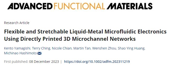 相关研究成果以题为“Flexible and Stretchable Liquid-Metal Microfluidic Electronics Using Directly Printed 3D Microchannel Networks”的论文被发表在《先进功能材料》杂志上。