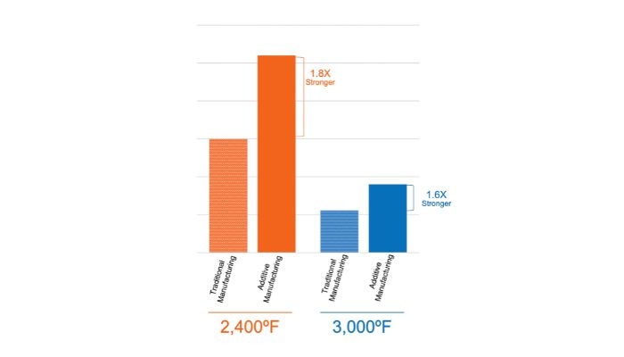 △C103 AM合金在高超音速温度下具有优异的强度性能。通过优化C103 AM合金,将它升级为“Super C103 AM”可以实现更高的性能