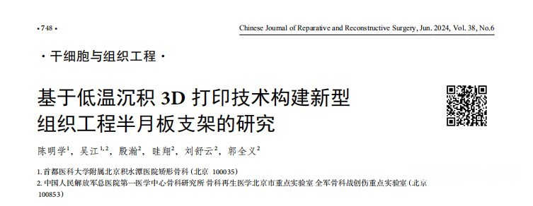 半月板复杂结构和功能以及有限血供使其再生修复依然充满挑战。近日,首都医科大学附属北京积水潭医院矫形骨科陈明学医生基于低温沉积3D打印技术构建新型组织工程半月板支架,评价该支架理化性质及生物相容性。该文章名为“Construction