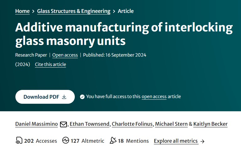 贝克尔和斯特恩及其同事在《玻璃结构与工程》杂志的一项题为“Additivemanufacturing of