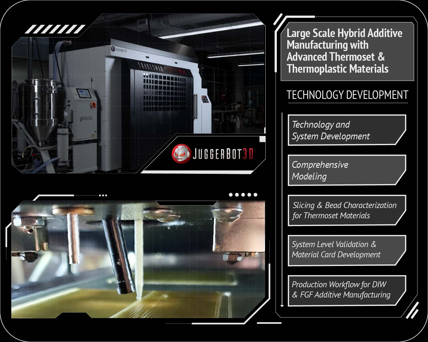 该项目涉及开发一个集成双组分树脂和颗粒进料材料挤出技术的系统,处理性能级热塑性聚合物和先进的热固性树脂油墨,包括环氧树脂和乙烯基酯。该系统的设计构建体积为