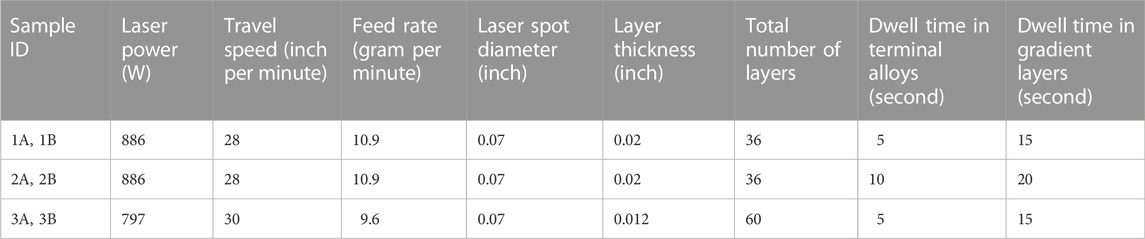 表2. 用于IN718/R41 级样品的 DED 构建参数(在氩气环境中)。