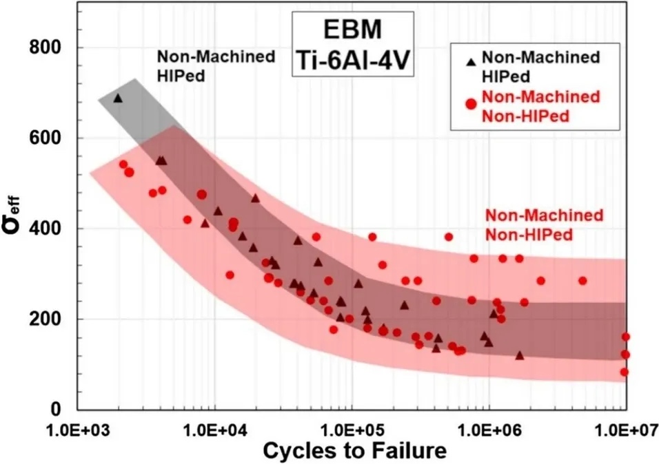 图9 HIP和非HIP样品在机加工和非机加工条件下的疲劳性能。