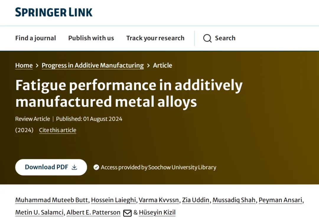原文:Butt, M.M. Fatigue performance in additively manufactured metal alloys. Prog Addit Manuf (2024)