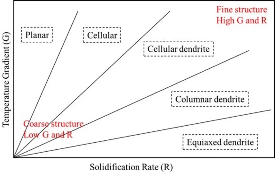 图7凝固速率和温度梯度对凝固方式的影响