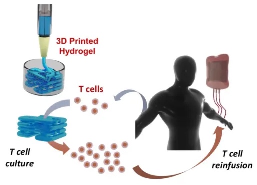 3D打印作为扩大T细胞制造生物混合水凝胶规模的策略