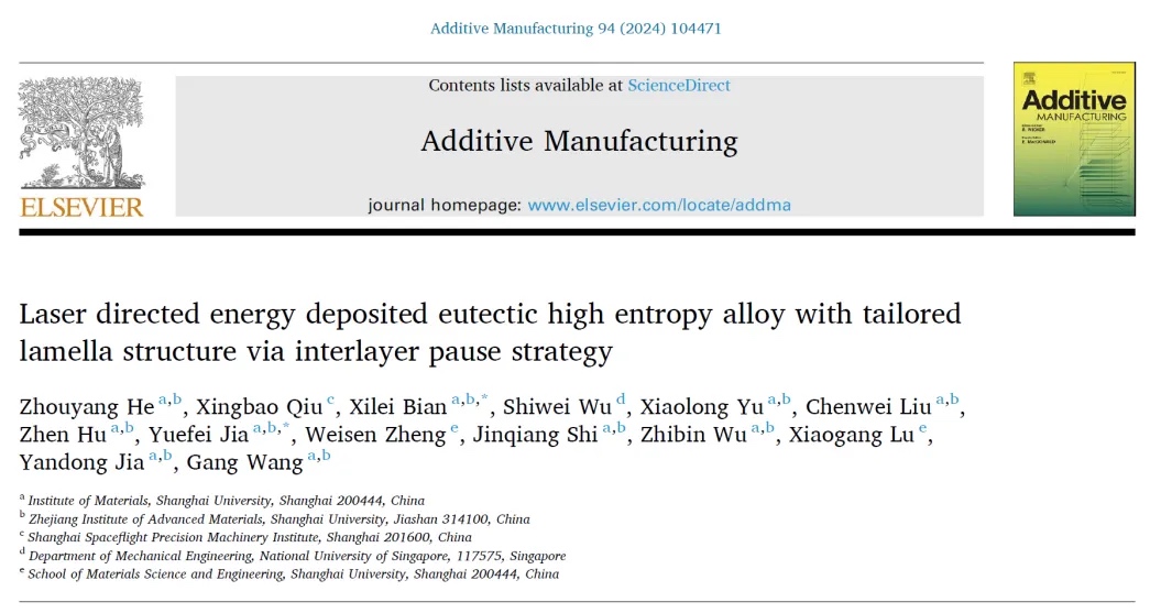 上海大学增材制造顶刊:突破传统,层间暂停策略提升共晶高熵合金性能!