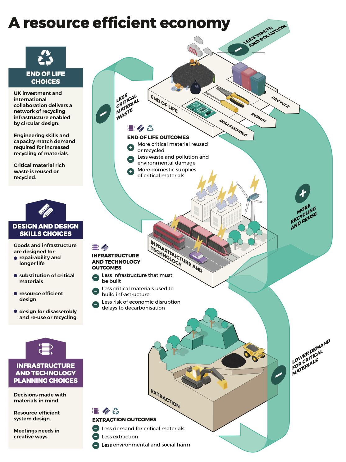 报告指出,为了实现2050年净零排放的目标,英国需要大幅减少经济活动中的材料足迹,以避免过度消耗资源并支持脱碳倡议。投资于设计以减少需求被视作解决这一问题的关键方案之一。政府和行业必须在规划基础设施系统转型时考虑到材料需求,以避免对稀缺或不可持续的资源产生依赖。