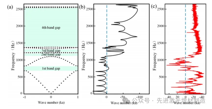 3. 这些LPBF制造的QZS部件在观测频率范围内显示出4个纵向带隙,其中第1、2、3和4个带隙分别为660 Hz-780 Hz、1120 Hz-1166 Hz、1167 Hz-1330 Hz和1420 Hz-2570 Hz。LPBF制造的QZS零件具有准零刚度特性,能够产生低频共振,可用于低频纵波的吸收。