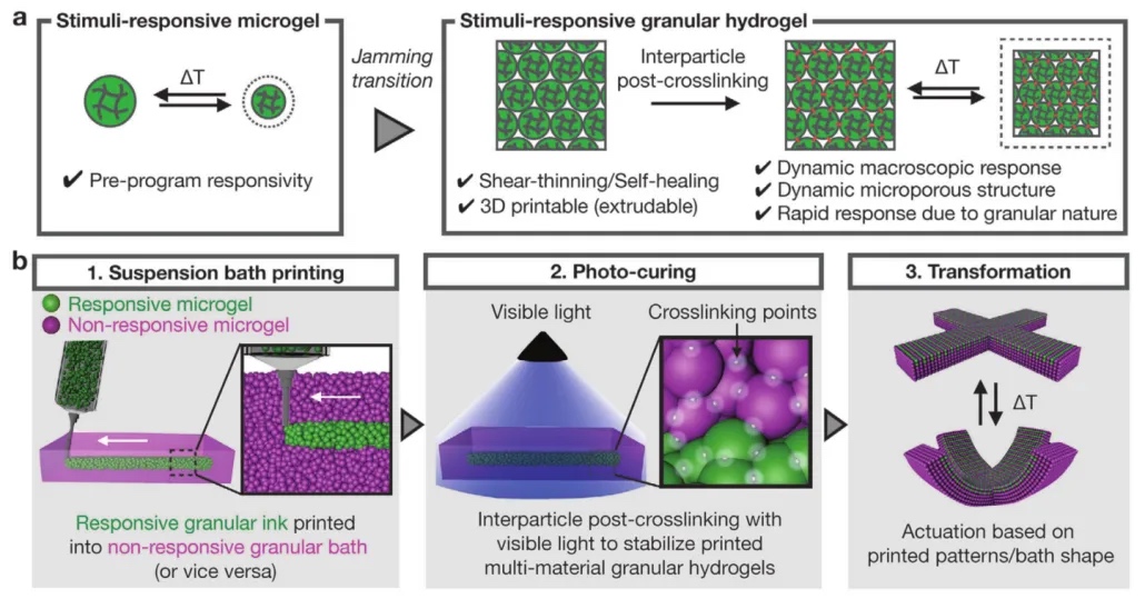 相关研究成果以“Engineered Shape-Morphing Transitions in Hydrogels Through Suspension Bath Printing of Temperature-Responsive Granular Hydrogel Inks”为题于2024年10月2日发表在《Advanced Materials》上。