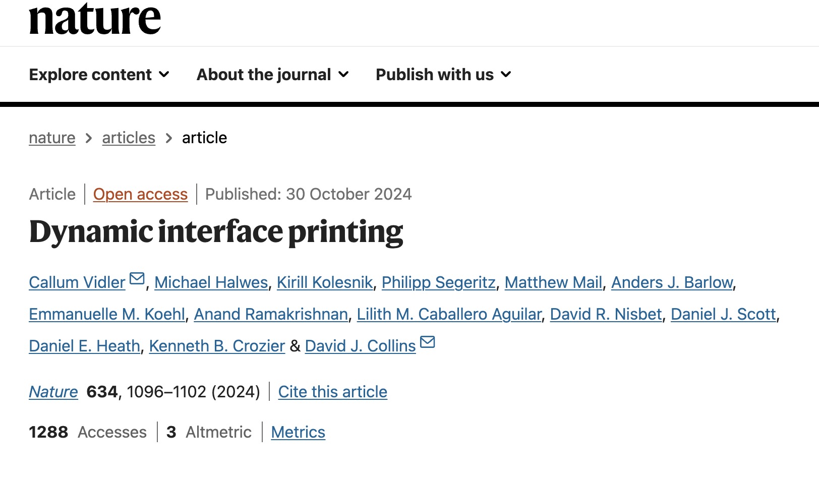 2024年11月2日,墨尔本大学的研究团队推出了一种创新动态界面3D打印技术(DIP)。该技术利用受限的气液界面和调制光,实现了快速、无支撑和高分辨率的生物打印,为生产复杂的细胞载体3D结构开辟了新途径。