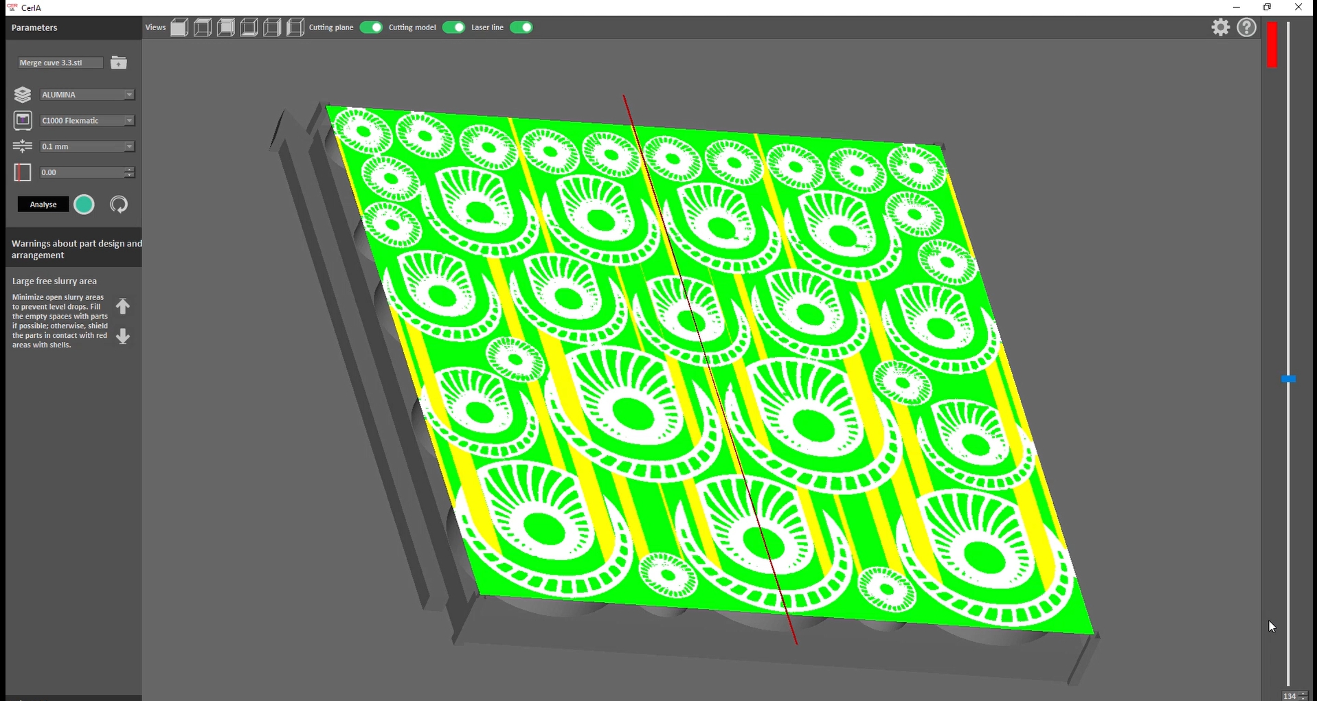 此外,CERIA与3DCeram现有的Build-It和CPS 2.0工具无缝集成,构建了一个完整的陶瓷3D打印生态系统。CERIA Set支持从构思到生产的各个阶段,指导用户优化零件放置和罐体布局,生成符合严格标准的自定义刮削参数。CERIA Live还配有颜色编码的可视化系统,实时监控每一打印层,帮助用户快速识别问题并确保生产成功。