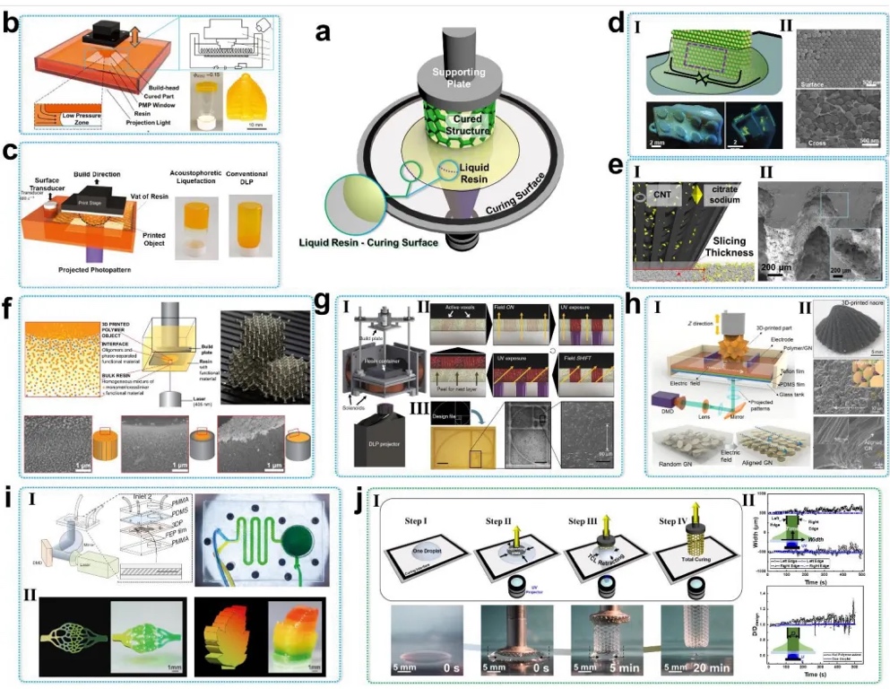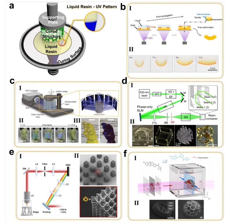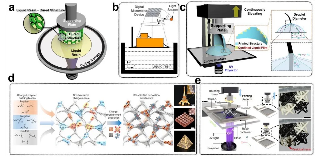 3D打印,又称增材制造,能够将计算机辅助设计直接按需转化为复杂结构。近年来,这项技术引起了广泛关注。在各种方法中,数字光处理(DLP) 3D打印利用聚合物或预聚物作为墨水,已成为领先的新技术,这得益于定制生产、医疗保健、教育和艺术设计等不同领域的高需求。DLP 3D打印技术采用固化切片作为成型单元,因其同时实现高打印速度和分辨率的潜力而受到认可。