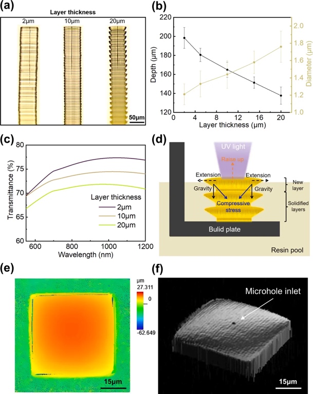 在先进制造技术领域,三维(3D)微结构的制备技术已经成为至关重要的探索方向之一,为设计和制造具有独特功能的微器件提供了巨大潜力。三维微结构主要分为两部分:(i)不同形状的三维主体结构,(ii)主体结构上的各种腔体结构(包括孔、槽、通道等)。尽管3D打印技术对于复杂3D结构已经实现大规模个性化定制,然而在腔体结构的精密制造方面,其打印腔体的精度仍存在一定的局限性。如果直接采用3D打印技术制备高精度通道结构,树脂的残留会导致腔体结构的堵塞,所以仅使用3D打印技术难以达到通道制造所需的高精度要求。因此,迫切需要新的加工方法弥补3D打印技术的不足。解决这一制造缺陷,对于提高微器件的制造精度至关重要。