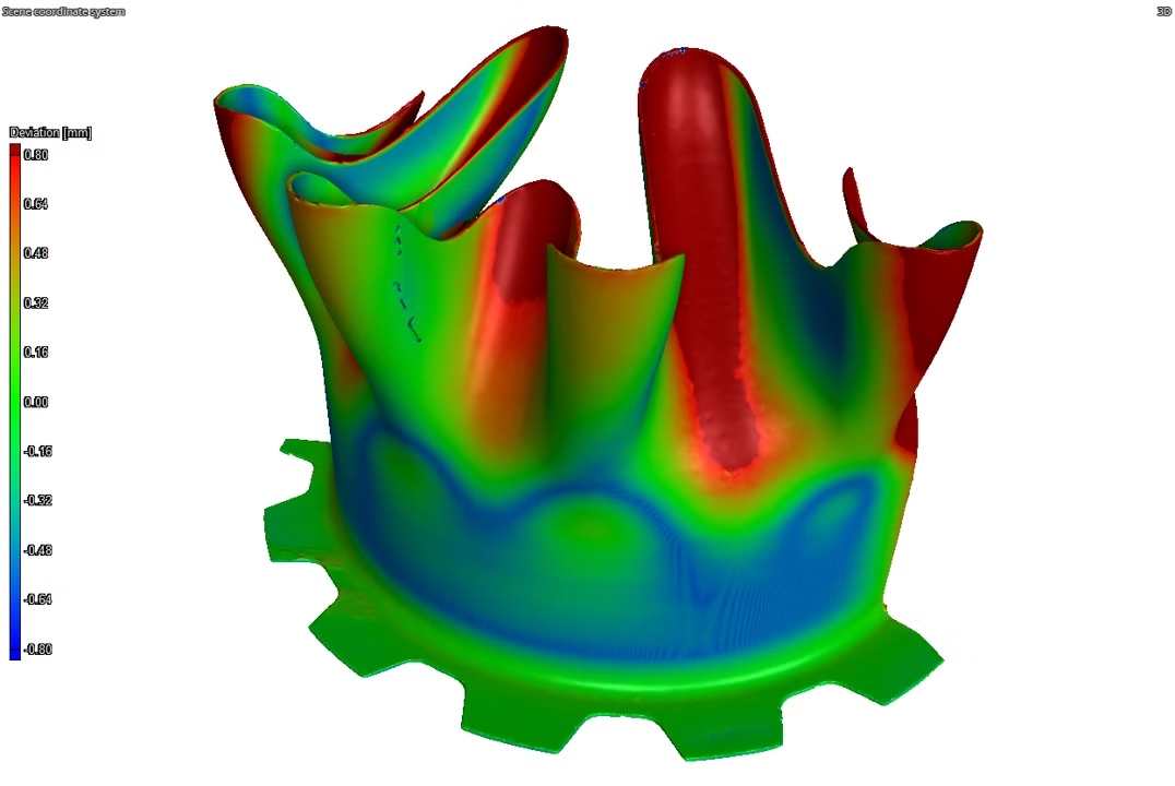 Hexagon的Simufact Additive能通过精确模拟预测变形和收缩,并通过全局补偿方法帮助消除大多数零件精度的打印试验。对于具有更复杂特征的零件,Hexagon的VGSTUDIO MAX软件通过强大的计量和3D扫描分析功能,能够轻松根据光学或CT扫描测量的偏差补偿可打印网格,并解决局部变形问题。