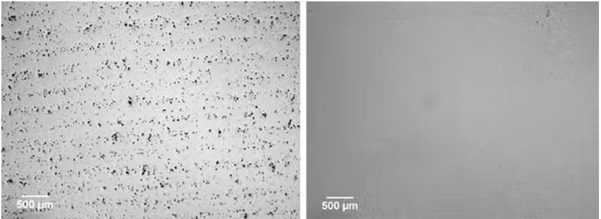 △冷喷涂钛样品HIP之前(左)和 HIP之后(右)