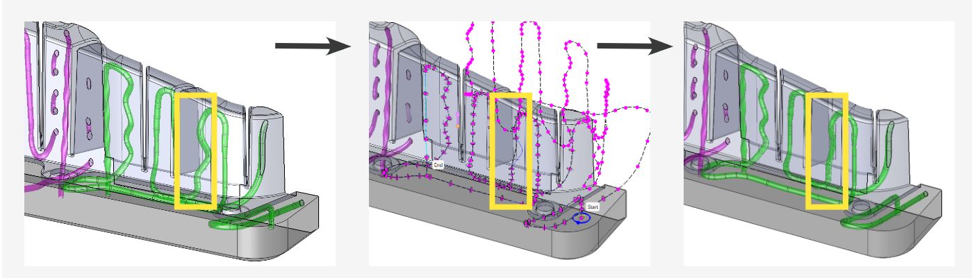 △使用一体化金属增材制造软件解决方案,可以快速应用和迭代复杂的随形冷却流道,以创建最高效的设计。