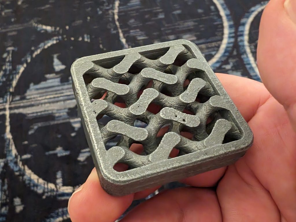 △采用真空增材铸造技术制成的壁厚为 1.5 毫米的晶格结构。照片来自 Enable Manufacturing