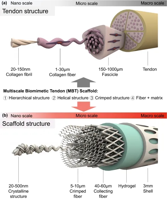 相关研究以“3D Printing of Multiscale Biomimetic Scaffold for Tendon Regeneration”为题发表在《Advanced Functional Materials》。浙江大学的贺永教授、湖州师范学院的马志勇副教授和贵州大学的陈跃威副教授为论文共同通讯作者,共同第一作者为姚克博士、吕尚博士和张新杰博士。