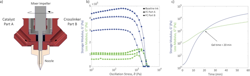 研究人员开发的新型硅胶油墨包含催化剂(加速化学反应的物质)和交联剂(连接分子的化合物)。这些组分在挤出过程中通过在线混合逐渐混合,从而实现结构的粘合。这种技术类似于双组分环氧树脂的快速固化(FC)油墨,其中交联剂和催化剂在挤出前是分开的,确保它们在流经喷嘴时不断混合。